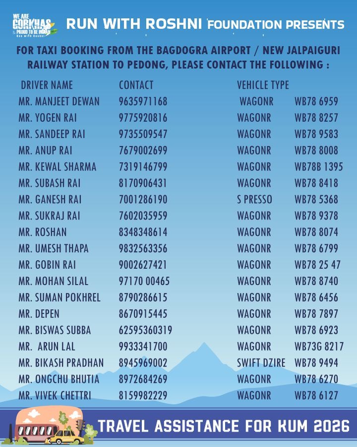 Run with Roshni Foundation (RWRF) is organizing Kalimpong Ultramarathon with distances of 65km and 50km. There will be a distances of 25km and 10Km on the same date for those who would like to experience the breath-taking beauty of the route. In the last three editions, there was 90km ultramarathon, due to the lack of less number of participants, in forth edition, it is not available.